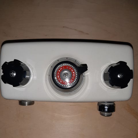 Hana ollut pannuhuoneessa ja vähällä käytöllä, jopa tarra on paikoillaan. Toimii hyvin, ei vuoda.