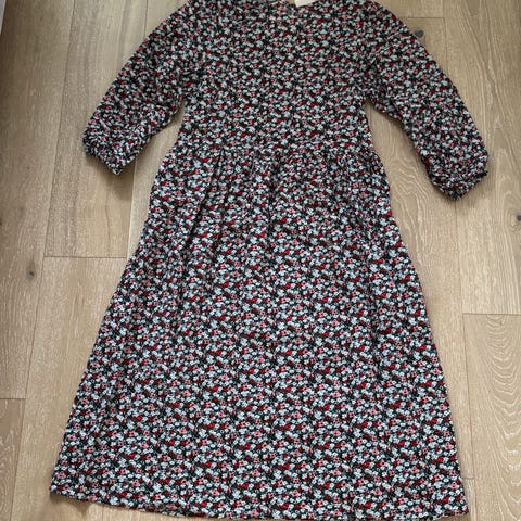 Milk Copenhagen ihana kukkamekko maximekko seersucker=puuvillakreppi puhvihihoilla. Kokomerkintä XS mutta lähinnä ainakin S. Mallinukke S/36 kokoa. Olka-helma n.122cm, kai-kai n.50cm, kainalo -hihansuu 38cm, vyötärö sauma mistä alkaa helma n.48cm. Hetken vain pidetty ja sitten pesty. Ei sovituksia, ei toridiiliä, en tingi. Nouto tarkka aika etukäteen sovitusti ma-pe kl. 10-16 hki88 tai postitse pakettina.