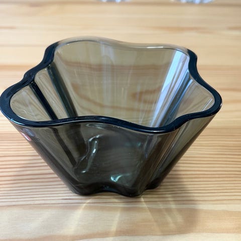 Iittalan Aalto kulho 75mm: Tarra on auringon valosta vain haalistunut esillä ollessa.