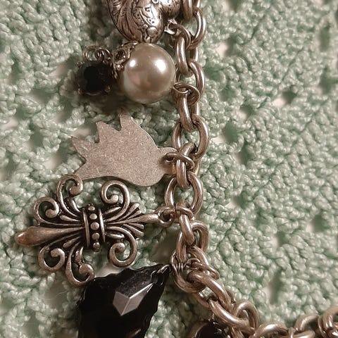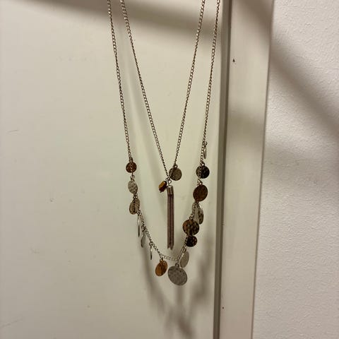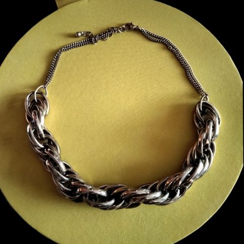 Kolmesta erivärisestä metallista koostuva kaulakoru