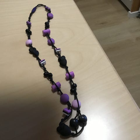 DIY tehty, uusi ja käyttämätön avainkaulanauha, jossa kätevä lukko johon avaimen saa kiinnitettyä ja otettua pois.