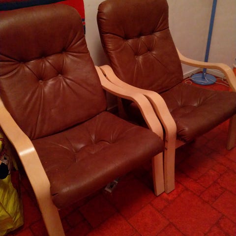 Myyntiin 2 kappaletta nahkaisia nojatuoleja.