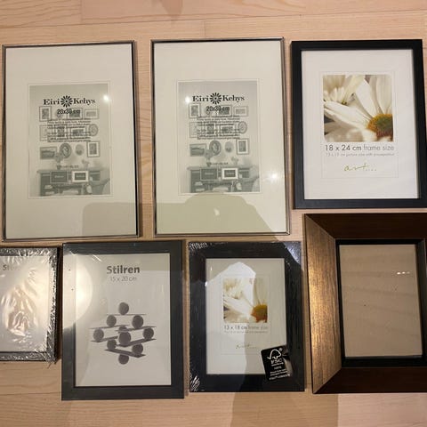 Uudet kehykset avaamattomassa paketissa. Ulkomitat 32x42cm ja pahvissa kuva-aukon koko 20x29 cm. Kappalehinta 8 euroa. Näitä on 2 kpl. Kalajoki-Ylivieska