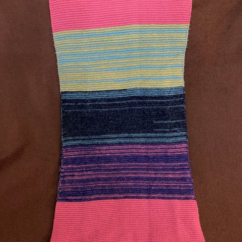 Mustavalkoinen raitahuivi. Materiaali puuvillamaista. Mitat noin 65 x 185. Hyväkuntoinen, tosin hiukan kaapissa rypistynyt.