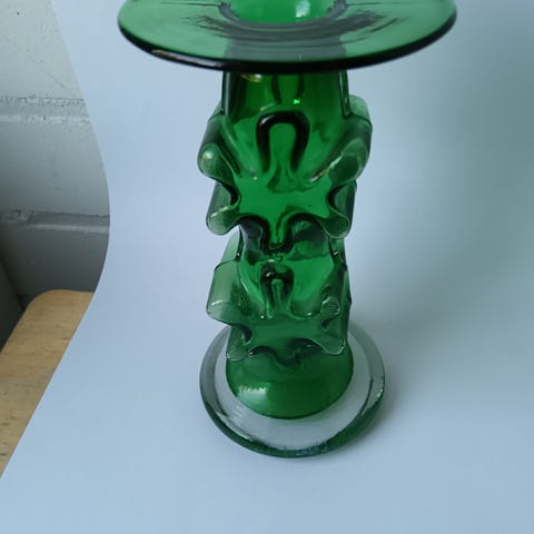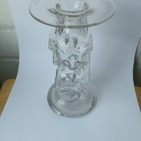 Myydään kaksi Kasperi kynttilänjalkaa, erikseen tai yhteensä. Toinen on kirkaslasinen ja toinen vihreä. Molemmat ehjät ja puhtaat ja signeeratut. Design Erkkitapio Siiroinen, Riihimäen Lasi.