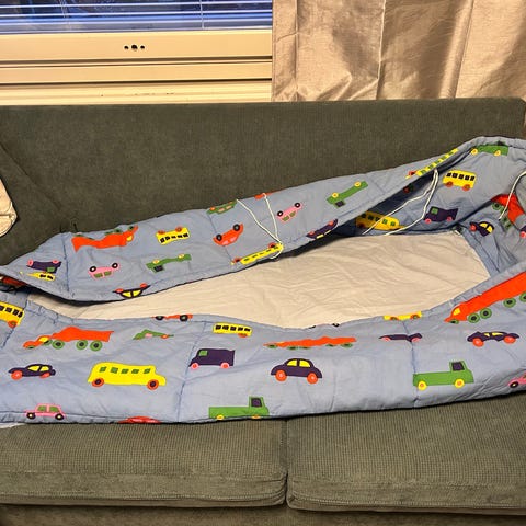 Kuvan mukainen Marimekon kankaasta itse ommeltu reunapehmuste. Pientä käytön jälkeä.