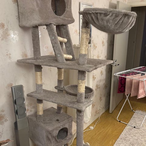 Kissan raapimispuu. Tehty vanhasta kukkapylväästä. On tukeva ja painava. Korkeus 80cm ja leveys 35cm. Hinta 10e