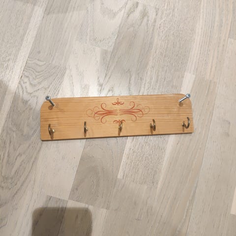 Avain naulakko puinen viidellä pidikkeellä.ketjulla roikkuva avaimen mallinen.