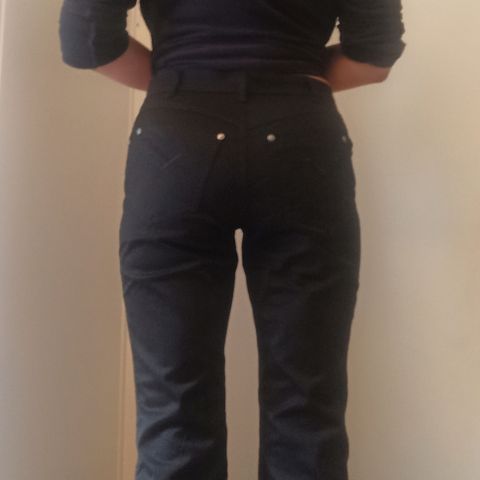 L.M. matalavyötärö college housut, tuoteseloste leikattu, mutta suurin osa materiaalista puuvilla ohutta college trikoota. Vyötäröllä ja lahkeiden suissa housujen kanssa samaa kuosia olevat resorit. Kokomerkintä 38. Vyötäröllä kiristysnyöri, vyötärön ymp. venyttämättä 82 cm, haarakorkeus edestä 24 cm, lahkeen sisämitta 79 cm. Haarasauman seutuvilla nukkaa, muuten oikein hyvät.