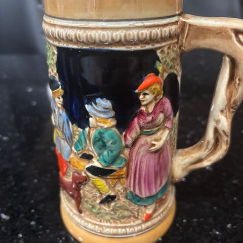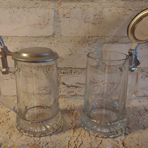 Litran vetoinen Isännän tuoppi + puoli tusinaa 0,5 litran vierastuoppeja. Kaikki kerralla.