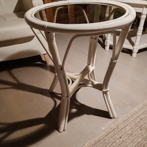 Myydään kuvassa näkyvä rottinkipöytä lasikannella. Hinta:80€