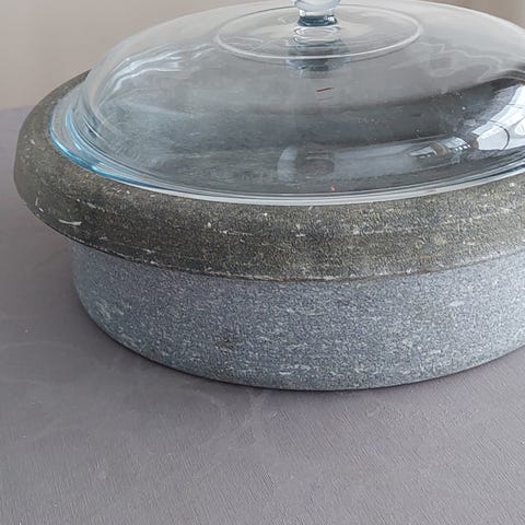 Kotimainen vanha hyväkuntoinen uuniastia. Korkeus n 10cm halkaisija n. 21,5cm. Kestävä ja lasitettu esim. karjalanpaistille