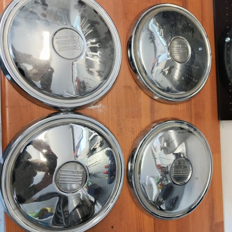 Fiatin vanhat pölykapselit, metallia ja ehjät. Halkaisija 19cm