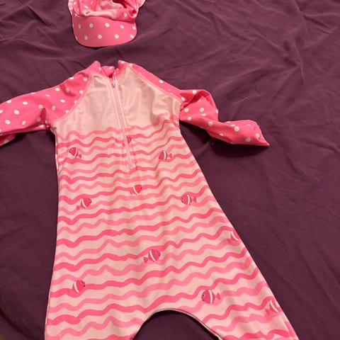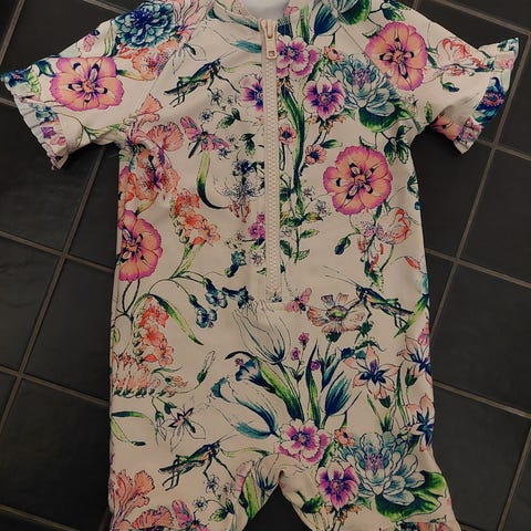 Myydään kerran käytetyt UV-suojattu pitkähihainen uimapaita sekä pestävä SplashAbout Happy Nappy- merkkinen uimavaippa. Yläosan koko 86 cm, uimavaipan 12-24 kk. Uimavaipan lahkeissa ja vyötäröllä tiiviit ja joustavat reunat, minkä takia istuu hyvin eikä vuoda helposti. Lisäksi kuivuu nopeasti, rullataan kuivaksi esim. pyyhkeen sisällä. Vaippaan saa ostettua kertakäyttöisiä välisuojia tai monikäyttöisen puuvillavälisuojan.