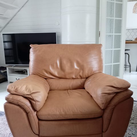 Myydään siistikuntoinen nahkainen mekanismituoli tarpeettomana.