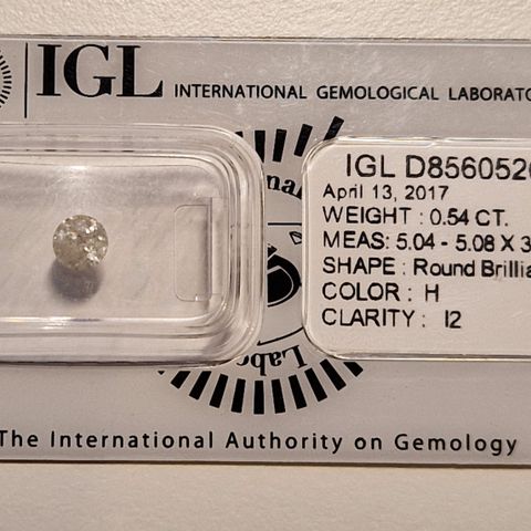 Timantti 0,54 ct (luonnon timantti IGL timanttitodistuksella)