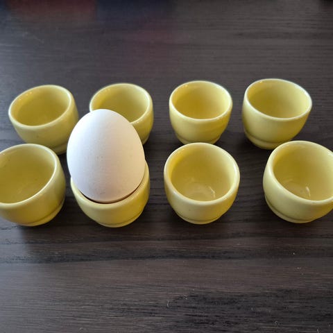 Arabian vanhat keltaiset kermanekat, 2 kpl sekä 2 kpl keltaisia Kilta munakuppeja, toisen nekan suussa vika, muut täysin ehjiä ja siistejä, hinta yht. 15 eur