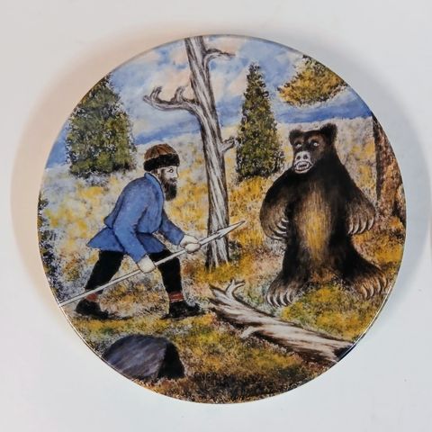 Arabia, Andreas Alariesto "Postinhaku" nro34, seinälautnen, pieni, serikuva, lautasen halkasija n.12 cm