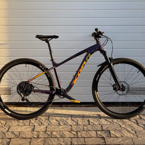 9 vaihdetta , ketjut pysyy hyppyreissäkin. Tehty kestämään mäkiajoa. Nestejarrut edessä ja takana.