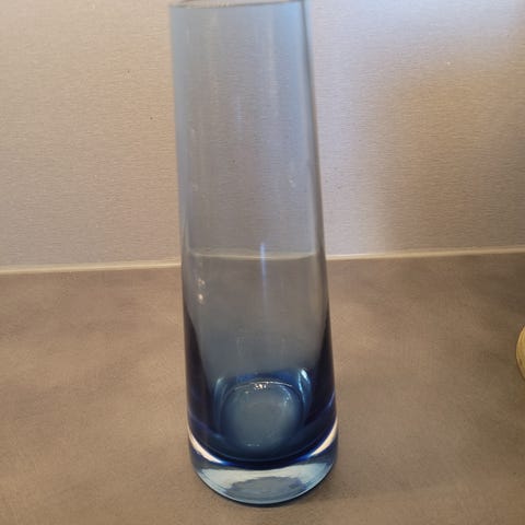 Virheetön siniharmaa Tamara Aladinin suunnittelema maljakko. Kork. 18cm, halk. 5,5cm. 1967 -68 tuotannossa. Nouto Karkkilasta.