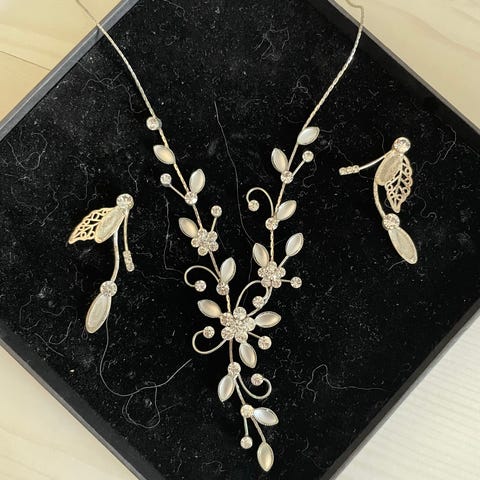 Saurum- merkkinen laadukas korusetti. Hopeinen kaulakoru ja korvakorut