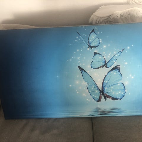 Pari pientä pilkkua löytyy taulun yläosasta (kuva) Olivat siinä jo taulua ostaessa.