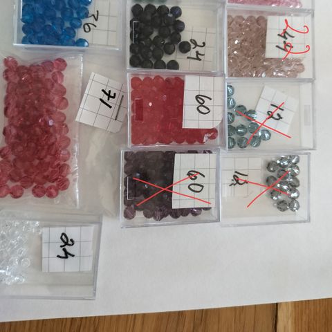 Helmiä, halkaisija 8mm. mustia 25kpl, tumma punalila 52kpl, punalila 26kpl, sinilila tumma 8kpl, vaaleanpunainen 10kpl, aniliininpun. 14 kpl, tummapun.siam 108kpl, siniharmaa 13kpl, Kirkkaat 31kpl. 30snt/kpl. Ei toridiiliä. Nouto tai posti pkt 4.90€.