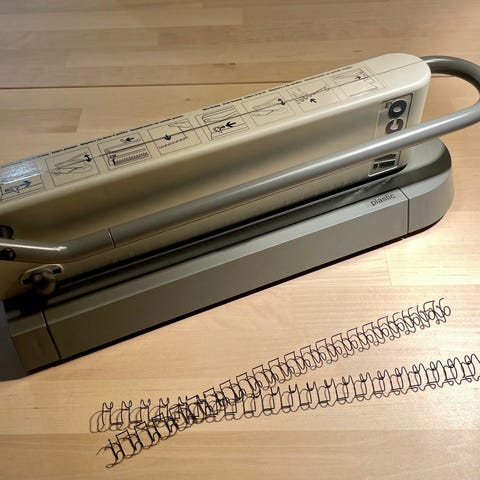 Myydään kierresidontalaite. Mukaan saa mustia ja sinisiä teräskierteitä (A4)