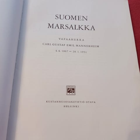 Hinta postitettuna 15 euroa. Vapaaherra Carl Gustaf Emil Mannerheim 4.6.1867 - 28.1.1951, Otava 1951,