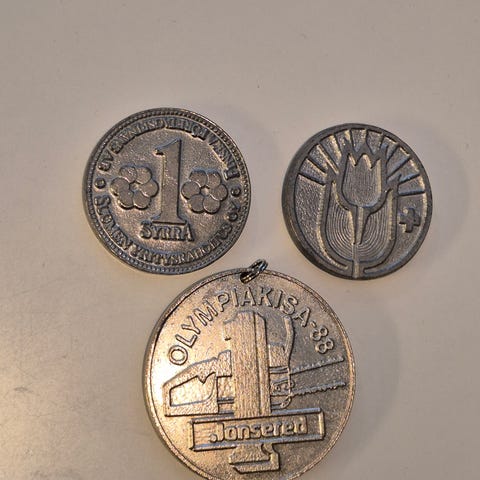 Laatikossa lojuneita käyttämättömiä urheilumitaleita. Halkaisija 30 mm. Yksi 2€, kolme 5€. Jos haluat isomman erän, kysy.