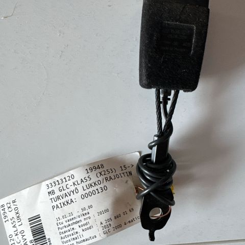 Mercedes-Benz X253 C253 C205 ja EQC 293 Keskipaikan turvavyön solki