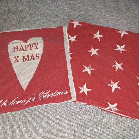 Myydään kuvan ehjät ja siistit joulunajan koristetyynyn päälliset.