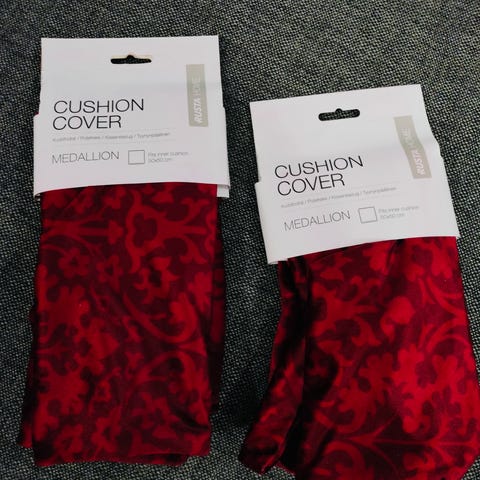 Takaosa kummassakin koristetyynyn päällisessä todella joulunpunainen.