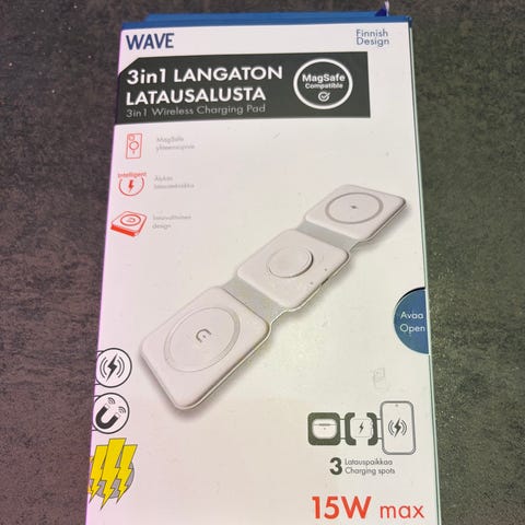 ESR:n 3 in 1 langattomassa latausasemassa on Qi2-standardin mukainen 15W nopea lataus iPhonelle, Apple Watchille ja AirPodseille, sekä CryoBoost-tekniikka puhelimen jäähdytykseen.