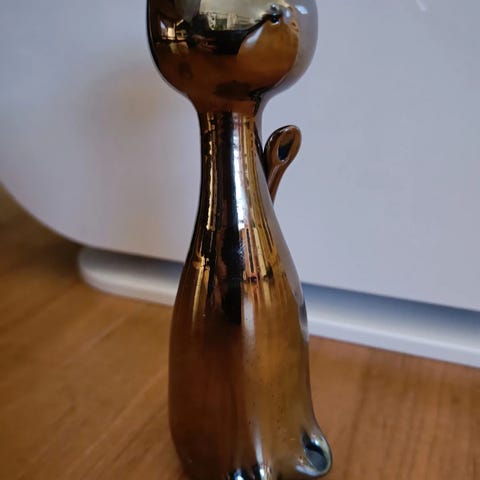 Myydään lasikoriste jossa kaksi kissaa, hyvässä kunnossa.
