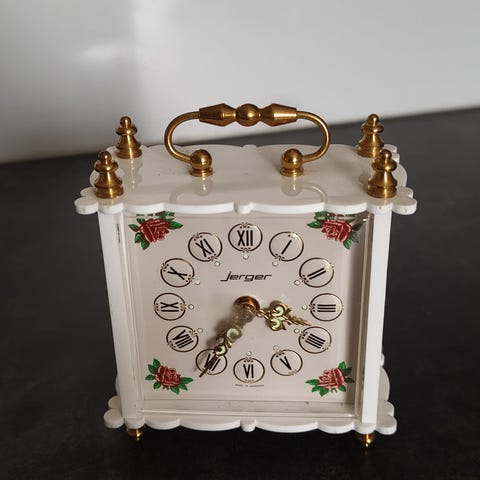 Erittäin hyväkuntoinen. Runko puuta ja kellotaulun lasi tosiaan lasia, ei muovia.