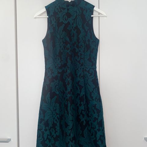 Tyylikäs ja naisellinen H&M merkkinen kotelomekko tai mekko. Kokomusta ja koko 34. Voi sopia myös pientä 36 kokoa käyttävälle. Takana hyvä vetoketju, jossa myös vetoketjun käyttöä helpottava satiinikaistale ja ylhäällä 1 kpl nappi. Kuvassa näkyy tarkemmin. Materiaali on laadukkaan oloinen eli pysyy hyvin kuosissaan ja ei helposti rypisty. Sisältää vähän elastinia eli joustaa hieman. Musta vuori.
