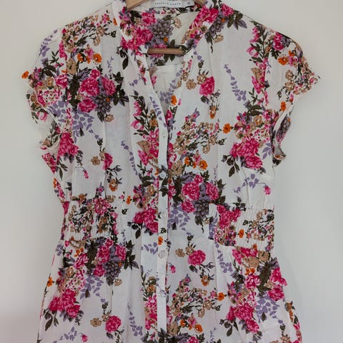 Kuviollinen hyväkuntoinen mekko. Joustaa. Kokomerkintä L mut sanoisin et vastaa M/L. Olkanauhoissa säädöt.