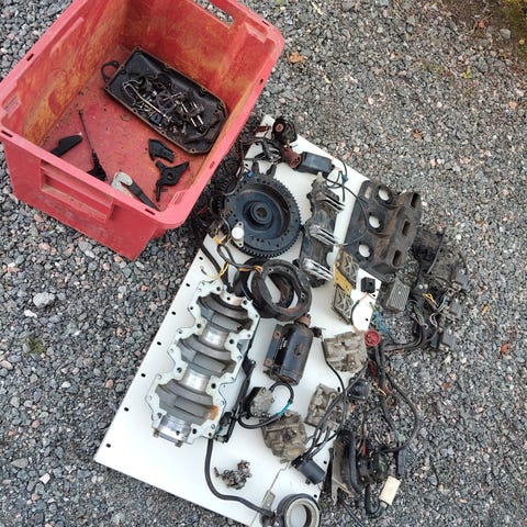 Kuvan osat Perämoottori Evinrude 4 hv. Hinta 50e kaikki yht sä