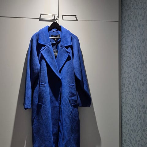 Uusi villakangastakki,koko 48,tumman sininen,laput kiinni.Olikin itselle iso,kai-kai n.60cm,olka-helma n.96cm,ei painava.Savuton,eläimetön koti,käteismaksu.