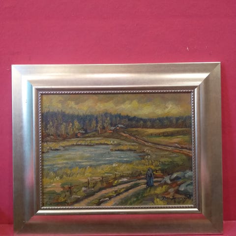 Pentti Lempiäisen öljyvärityö "Suopursut" vuodelta 2002. Työn korkeus on 34 cm ja leveys 23 cm. Kehys 41 X 31 cm.
