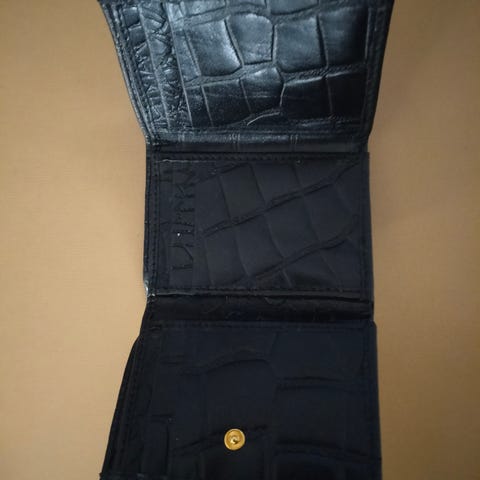 (Teko)nahkainen musta/tummanruskea korttilompakko.