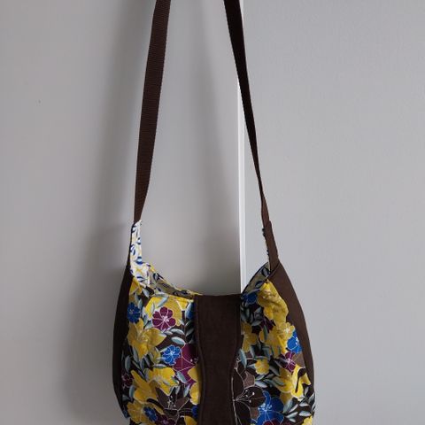 Ruskea kangaslaukku arkeen. Materiaali vahva kangas.