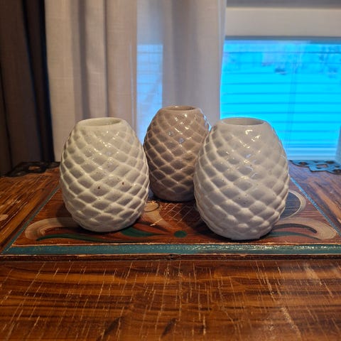 Myydään kaksi kynttilänjalkaa. Hinta yhteensä 20.- Korkeus 16 cm.