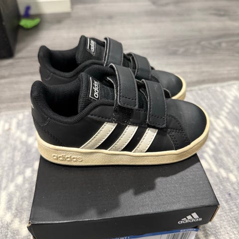 Myydään uudet ja käyttämättömät valkoiset Adidas Grand Court lasten tarralenkkarit koossa 25. Tulevat allergiakodista, laatikko on tallessa.