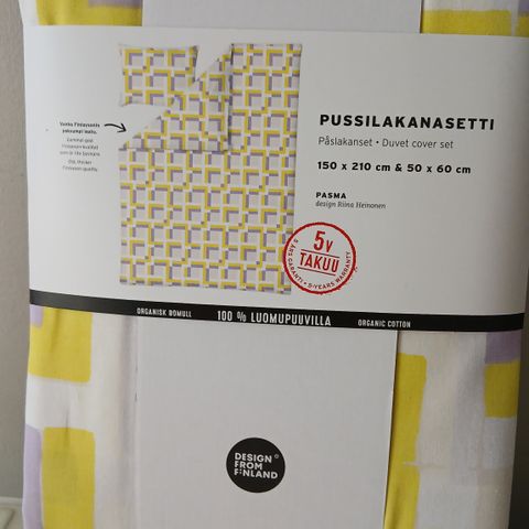 Vallilan pussilakanasetti avaamaton paketti. Rauma, candy Design Riina Kuikka.