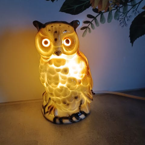 Sain tämän 1970-luvun alussa tämän naapurin tädiltä. En tiedä sitten, että miten kauan tämä laivavalaisin on hänellä ollut. Laiva on puuta. Siinä olleet alkuperäiset purjeet ovat hävinneet johonkin paria lukuunottamatta, joten tein uudet :) Sähköt vaihdatin nyt helmikuussa kokonaan uusiin, kun halusin led-lampun, joka ei kuumene ja muutenkin koin hyväksi laitattaa uuden johdon siihen liittyvine tykötarpeineen. Johdossa on katkaisija.