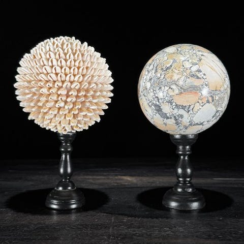 Koriste-esine (2) - Wonderful Pair of Shell Ball & Yellow Maligano Jasper on