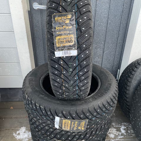 Continental Icecontact2, 195/65r15. Nastat tallella, pintaa 6mm. 120e/sarja.