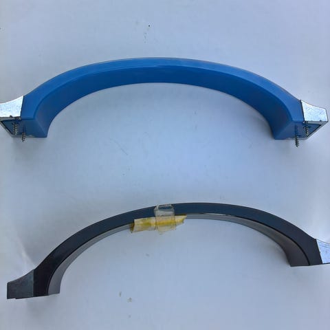 Ruuvit on peittänyt muovinen laatta, mutta se meni rikki kun irrotettiin. Käyttökelpoinen ja näyttävä pyyherengas kuitenkin.